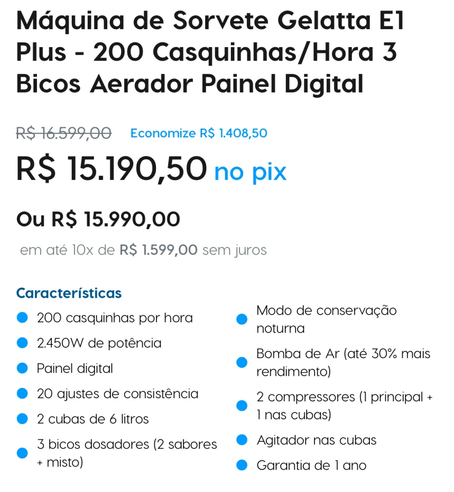 Máquina Elgin de alta qualidade. Ótima para confeitarias, sorveterias, bares e até Restaurantes. Eficiente e fácil de usar.